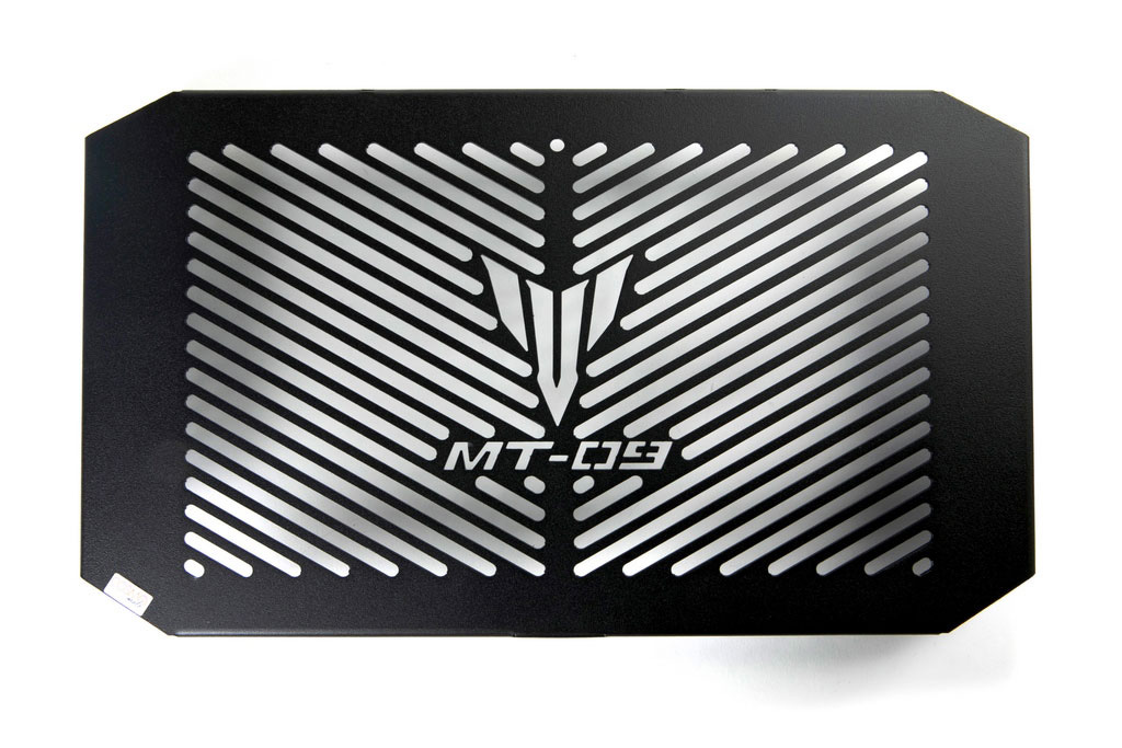 Aluminum radiator guard for the MT-09 2017 naked with the MT logo.